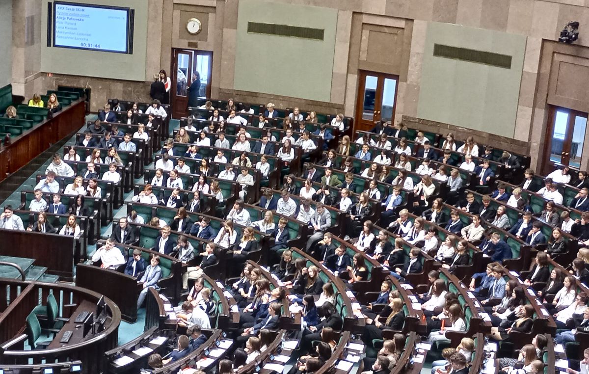 z całej Polski. 30 września 2024r. uczniowie klas szóstych, siódmych i ósmych naszej szkoły uczestniczyli w XXX Sesji Sejmu Dzieci i Młodzieży z tematem wiodącym: „ Co jest dla nas najważniejsze?”. Zasiedli w sejmowych ławach, brali udział w dyskusji i głosowaniach,